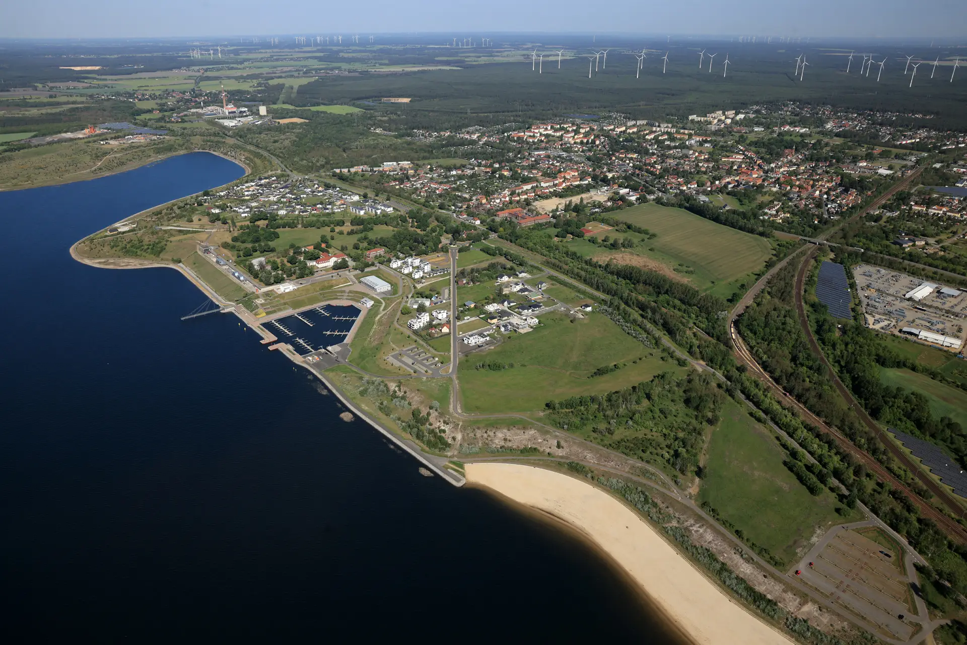 Blick von oben: Das Lausitzer Seenland mit allen fünf Seen im Verbund