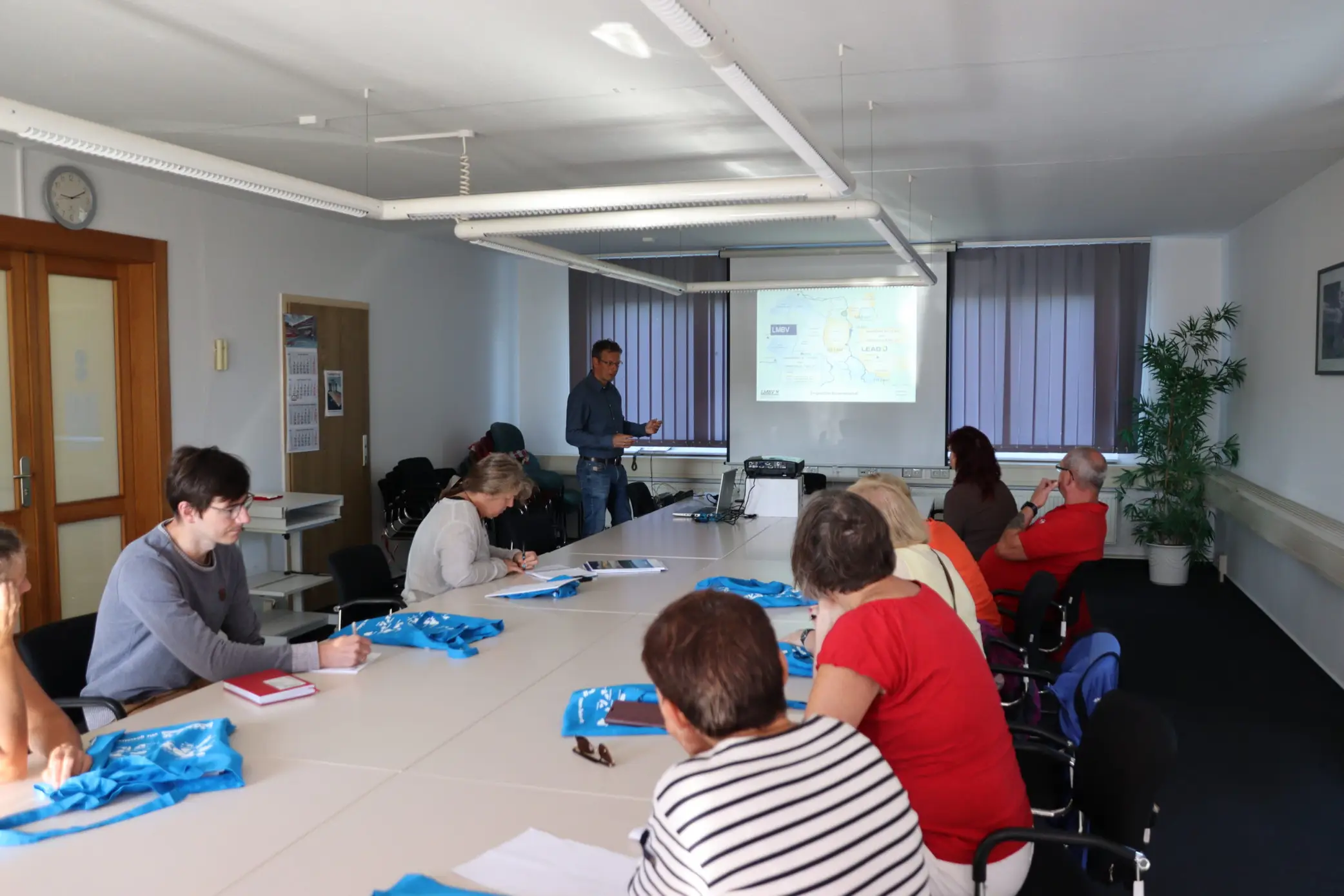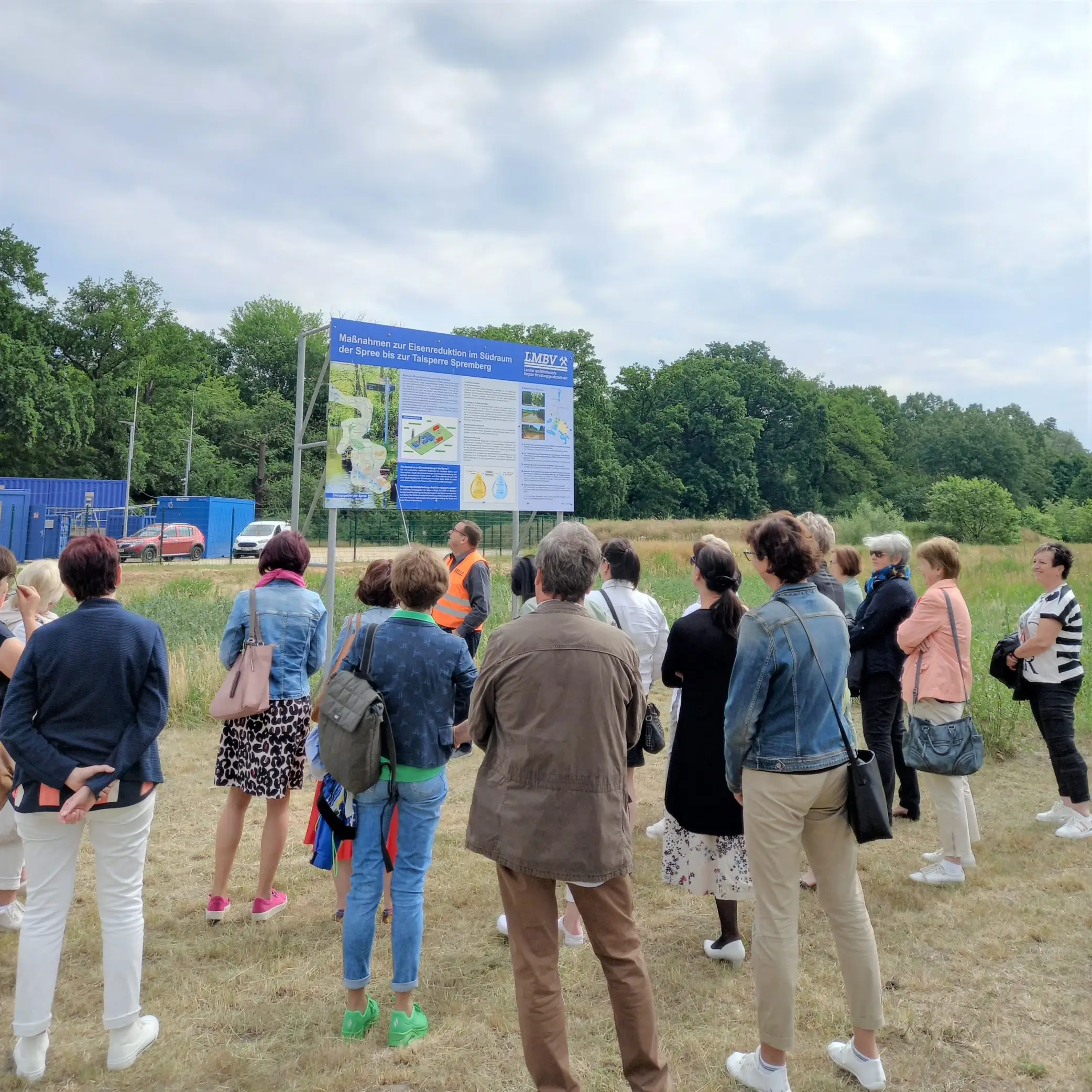 Übergabe des Bescheides ist erfolgtB. Sablotny bedankte sich bei allen TeilnehmernGäste bei der Übergabe des FördermittelbescheidesBauschild der LMBV am Sornoer Kanal