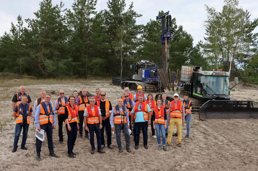Genau dafür werde das Testfeld benötigt, betonte Dr. Dennhardt. Einen erheblichen Einfluss auf die Dauer der Maßnahme habe der Abstand, in dem die Lanzen bei der Rütteldruckverdichtung (RDV) in den Boden getrieben werden. Der Experte spricht in diesem Zusammenhang von einem Raster. Wenn beispielsweise für das Raster Abstände von 4 mal 4 Meter genutzt werden könnten, kämen die Arbeiten deutlich schneller voran als bei einem Raster von 3 mal 3 Metern. Zugleich würde mit dem Testfeld ermittelt, wieviel Boden zur Wiederauffüllung gebraucht werde, aber auch was für ein Mess- und Kontrollprogramm angewendet werden müsste, um einen jederzeit sicheren Betrieb zu gewährleisten.