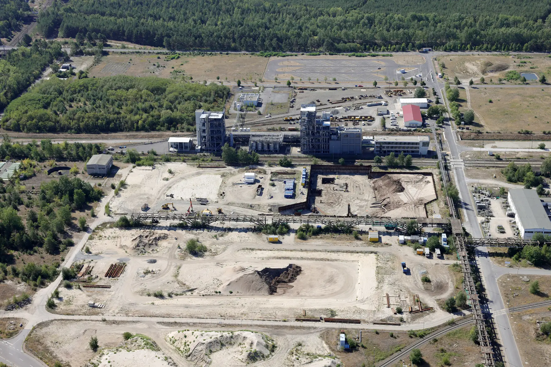 Der RDV-Seilbagger ist angeliefert. Blick über die Kohlebahnausfahrt hin zur Glassandhalde.