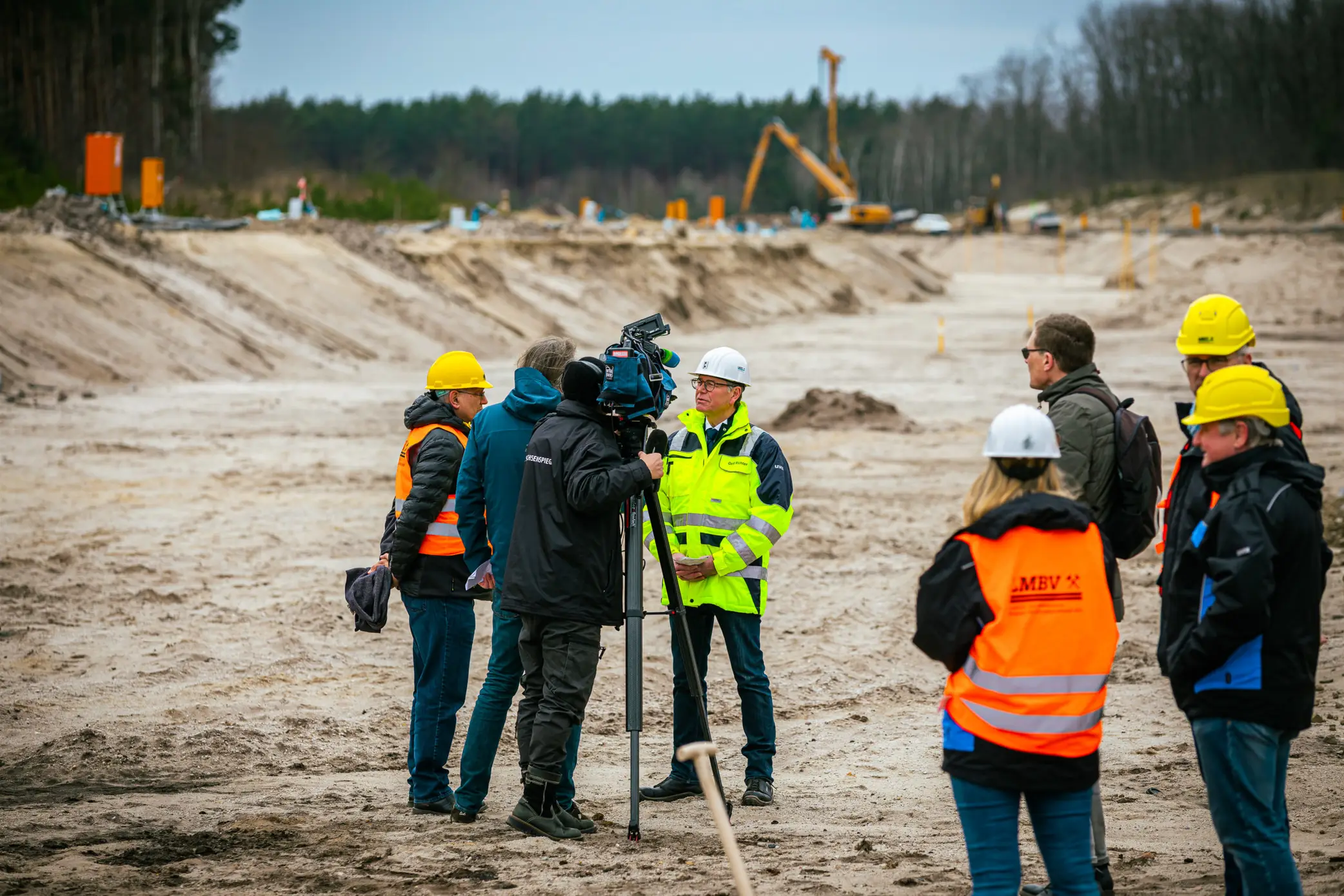 Senftenberg/Bluno. Bei einem Reportage-Vorort-Termin lobte der zuständige LMBV-Projektmanager Steffen Kowalick den bisher erreichten Baufortschritt auf der Bergbausanierungsbaustelle am Überleiter 3 im Lausitzer Seeland.