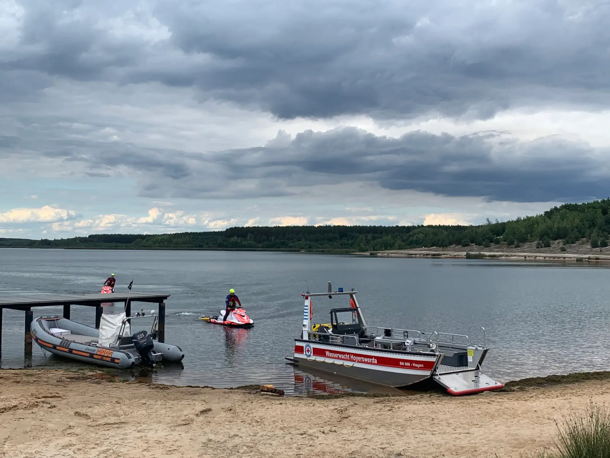 Senftenberg/Elsterheide. Das neu errichtete Service- und Überwachungsgebäude am Badestrand des Geierswalder Sees wurde am 1. September 2022 von der Gemeinde Elsterheide feierlich in Betrieb genommen. Mit der Eröffnung kann die Ortsgruppe Hoyerswerda der Wasserwacht des Deutschen Roten Kreuzes in das Obergeschoss des Gebäudes am Bergbaufolgesee einziehen. Bis zu vier Rettungsschwimmer werden ab Saisonstart 2023 dort stationiert sein. Die bislang provisorische Containerlösung wird durch diese moderne Rettungswache abgelöst. Im Rahmen der öffentlichen Nutzung gibt es neben den Sanitäranlagen für Strandbesucher auch ein Wickelraum im Untergeschoss. Die Räumlichkeiten können in den Sommermonaten täglich genutzt werden.